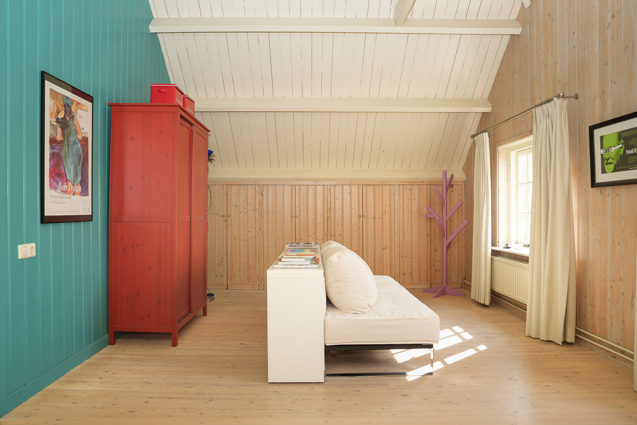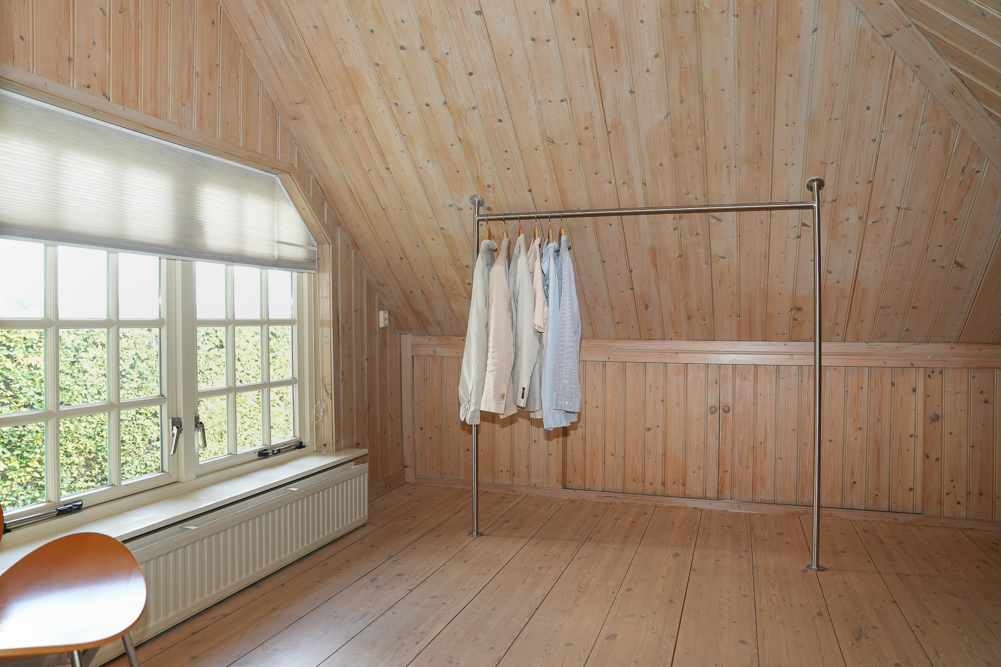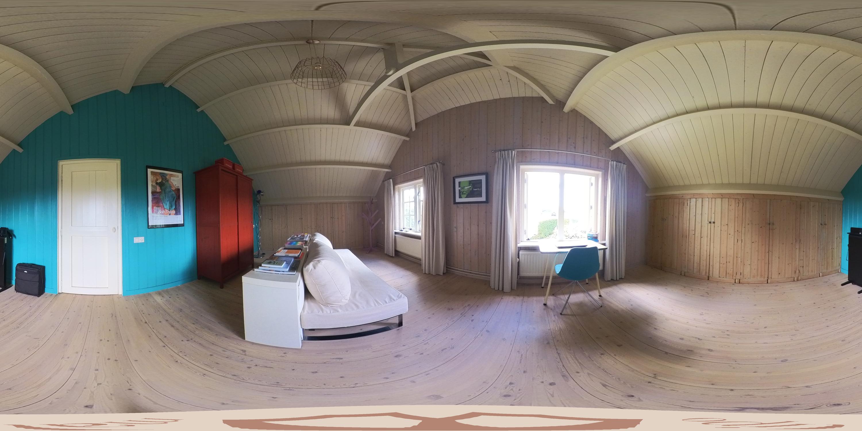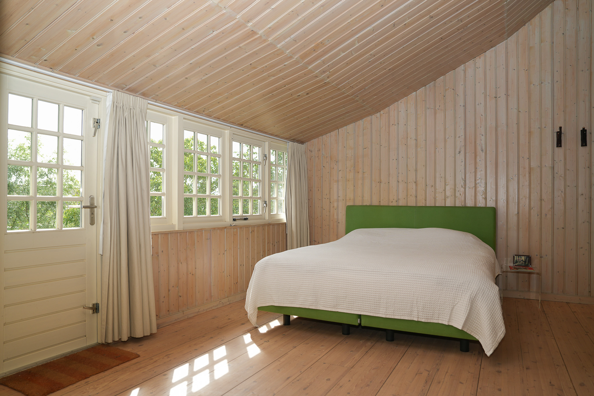 De slaapkamer aan de oostzijde beslaat de volledige diepte van het huis en is voorzien van vaste kasten onder de kap. De ouderslaapkamer grenst aan een breed balkon en aan een kamer die nu in gebruik is als kleedkamer. Deze ruimte leent zich ook uitstekend als extra werkkamer of badkamer.