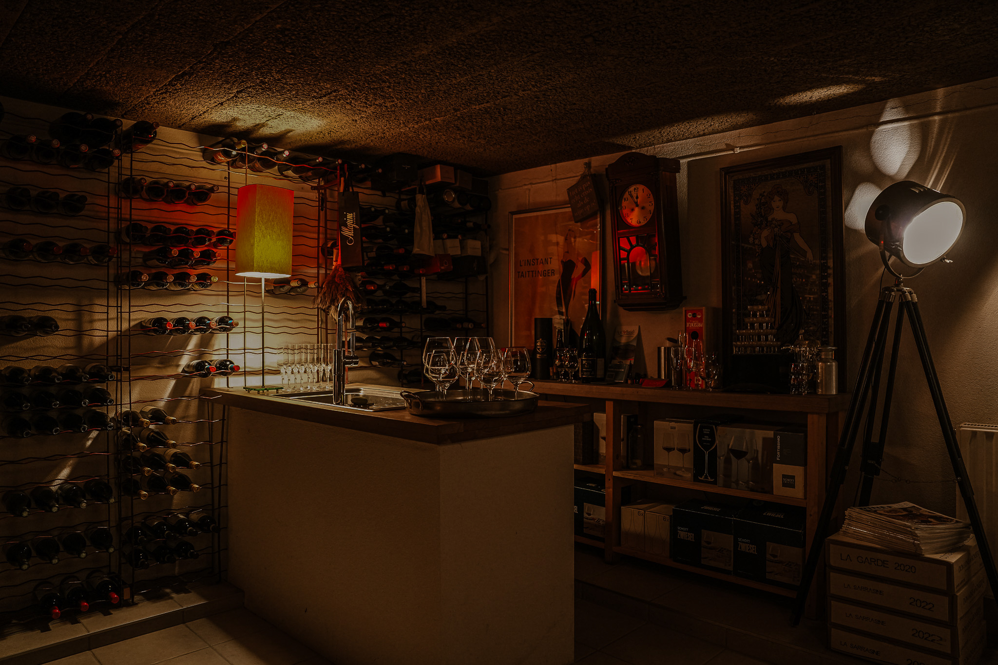 Onder het hele pand strekt zich een groot souterrain uit met een stahoogte van circa 2,10 meter. Deze ruimte is momenteel ingericht als sfeervol wijnlokaal waar proeverijen worden georganiseerd, maar kan uiteraard ook uitstekend dienstdoen als hobbyruimte, fitnessruimte of extra opslag.