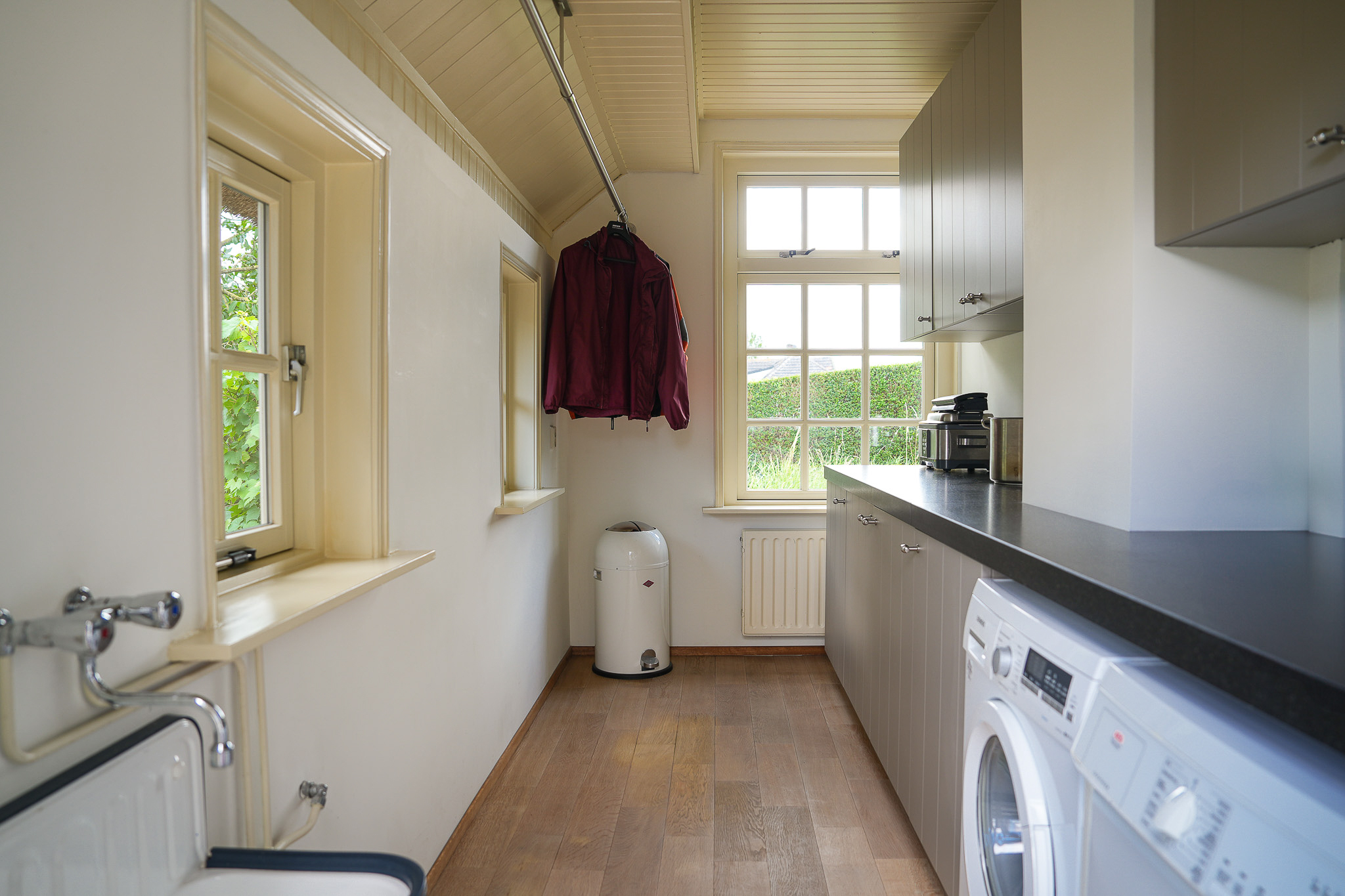Hier bevinden zich tevens een toiletruimte, een pantry en een berging met de opstelplaats van de cv-ketel. Het souterrain is bereikbaar via dubbele hardhouten deuren vanuit de tuin.