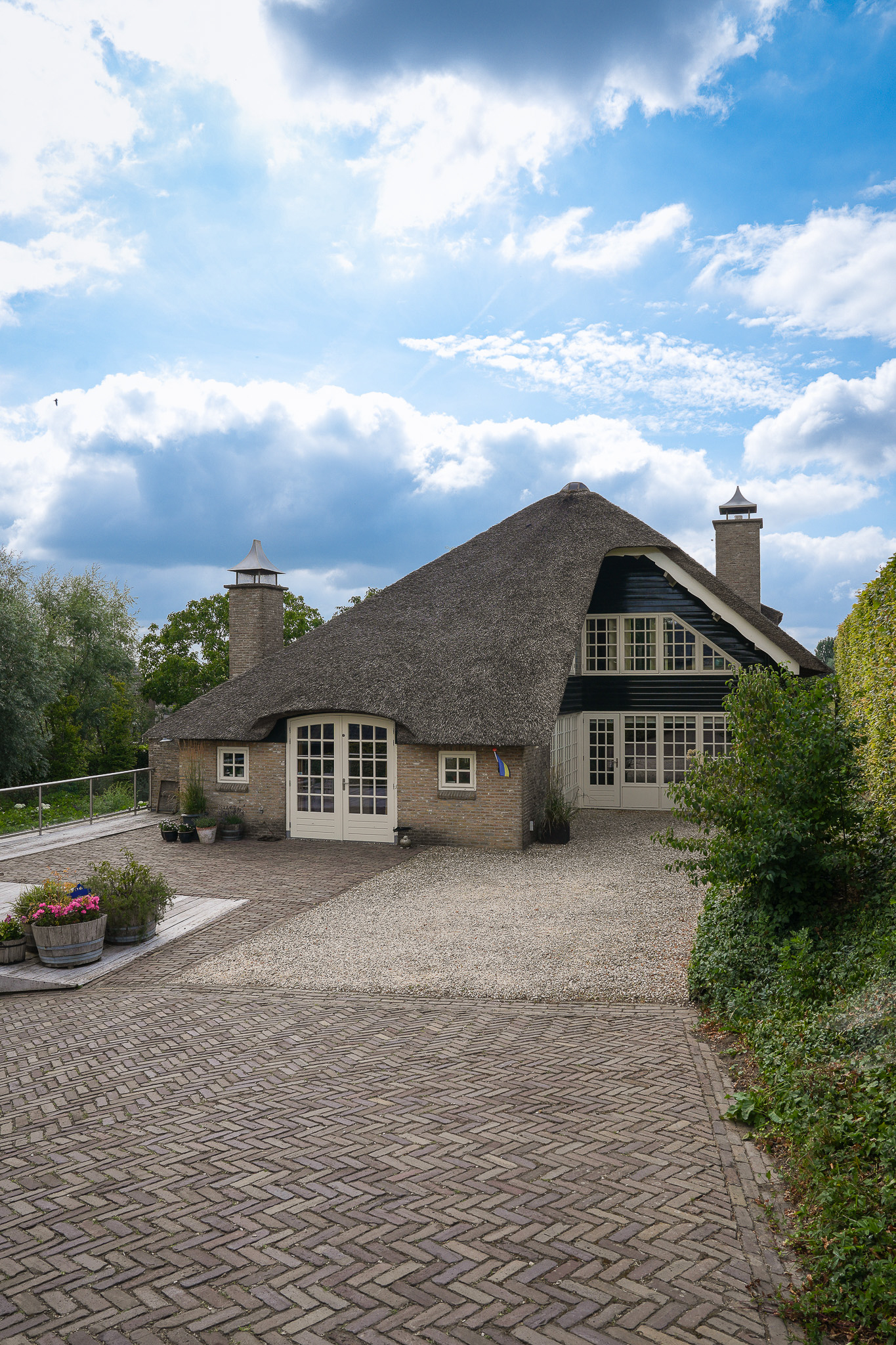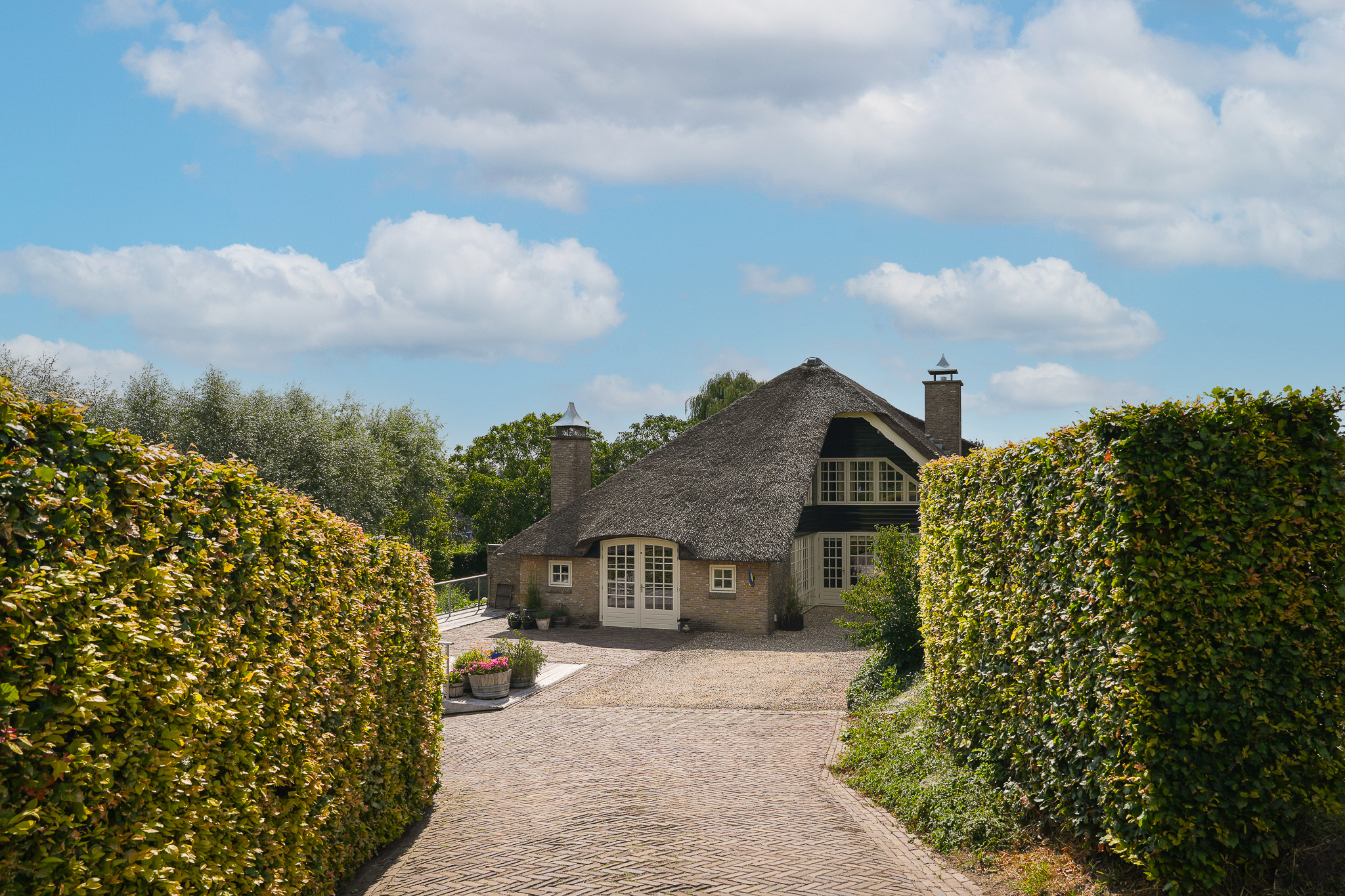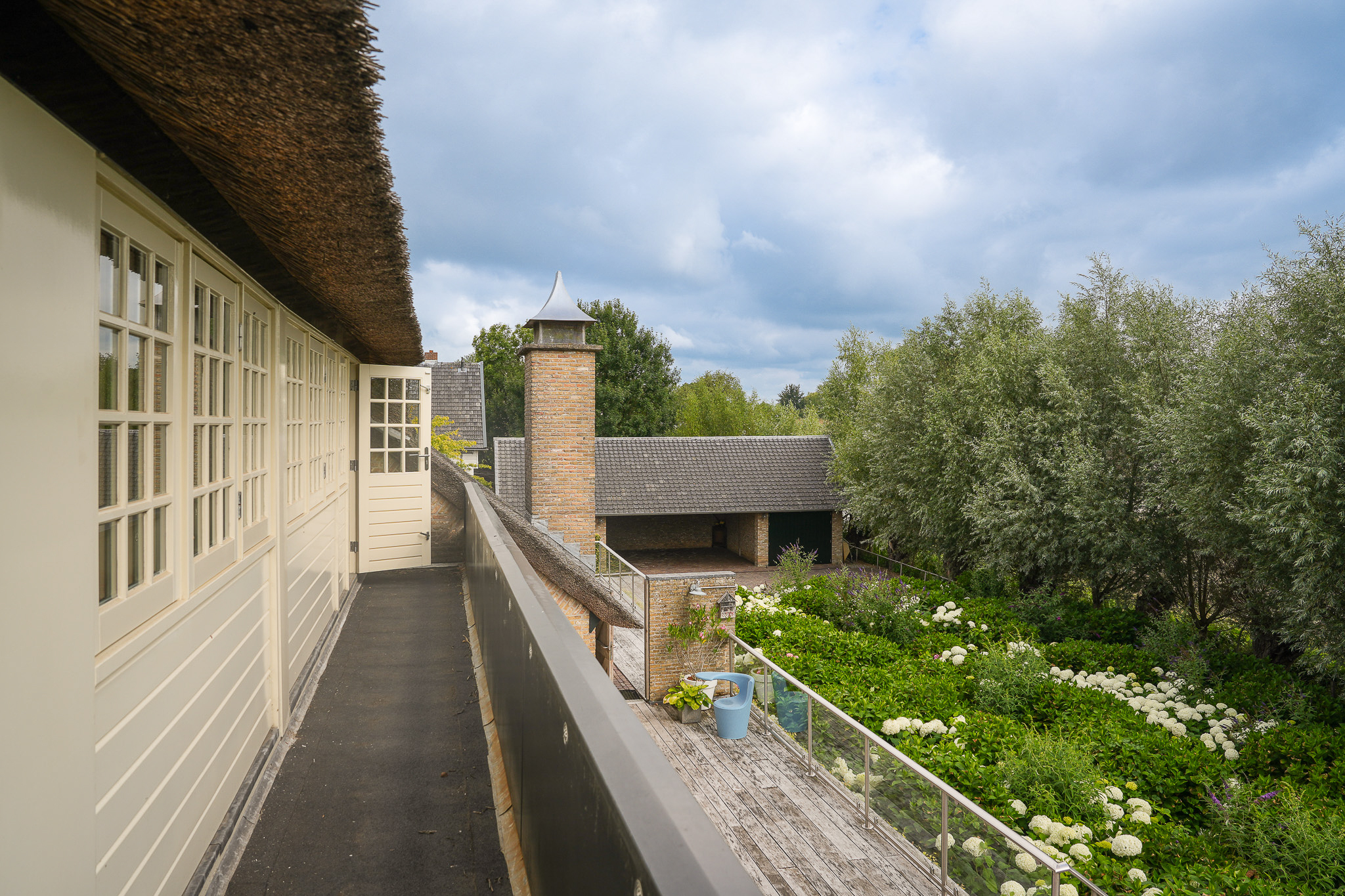 Het landhuis is volledig geïsoleerd en verkeert in zeer goede staat van onderhoud. De rieten kap is tien jaar geleden geheel vernieuwd. Op de begane grond zijn de spanten en balken in het zicht gelaten, wat zorgt voor een warme, landelijke sfeer. De verdieping is afgewerkt met kraaldelen en brede vloerdelen in alle vertrekken.