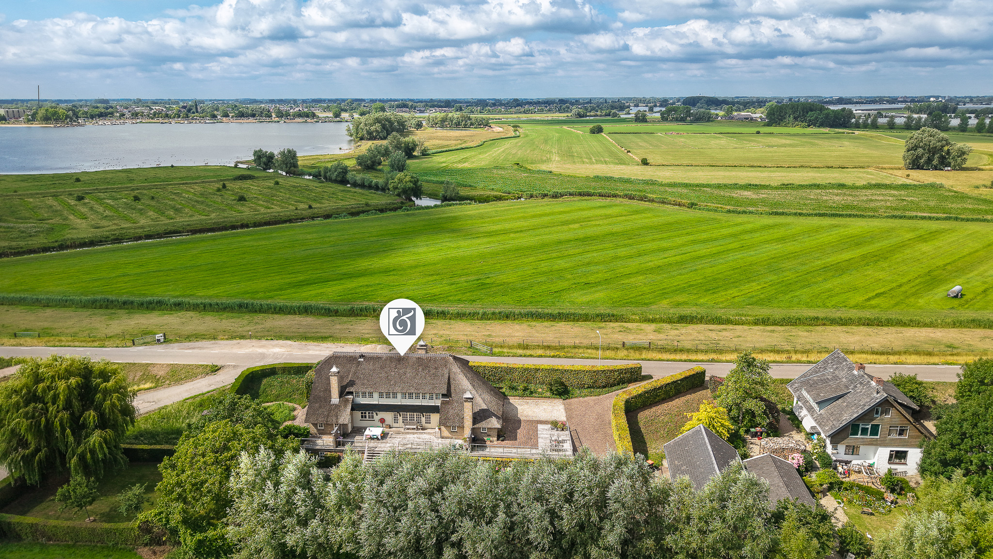 Op een landelijke locatie nabij de Maas staat dit rustieke landhuis met een dubbele garage met carport op een perceel van ruim 2.000 m². Rondom het huis liggen een gazon, volwassen bomen, meerdere terrassen en een onderhoudsvriendelijke tuin.