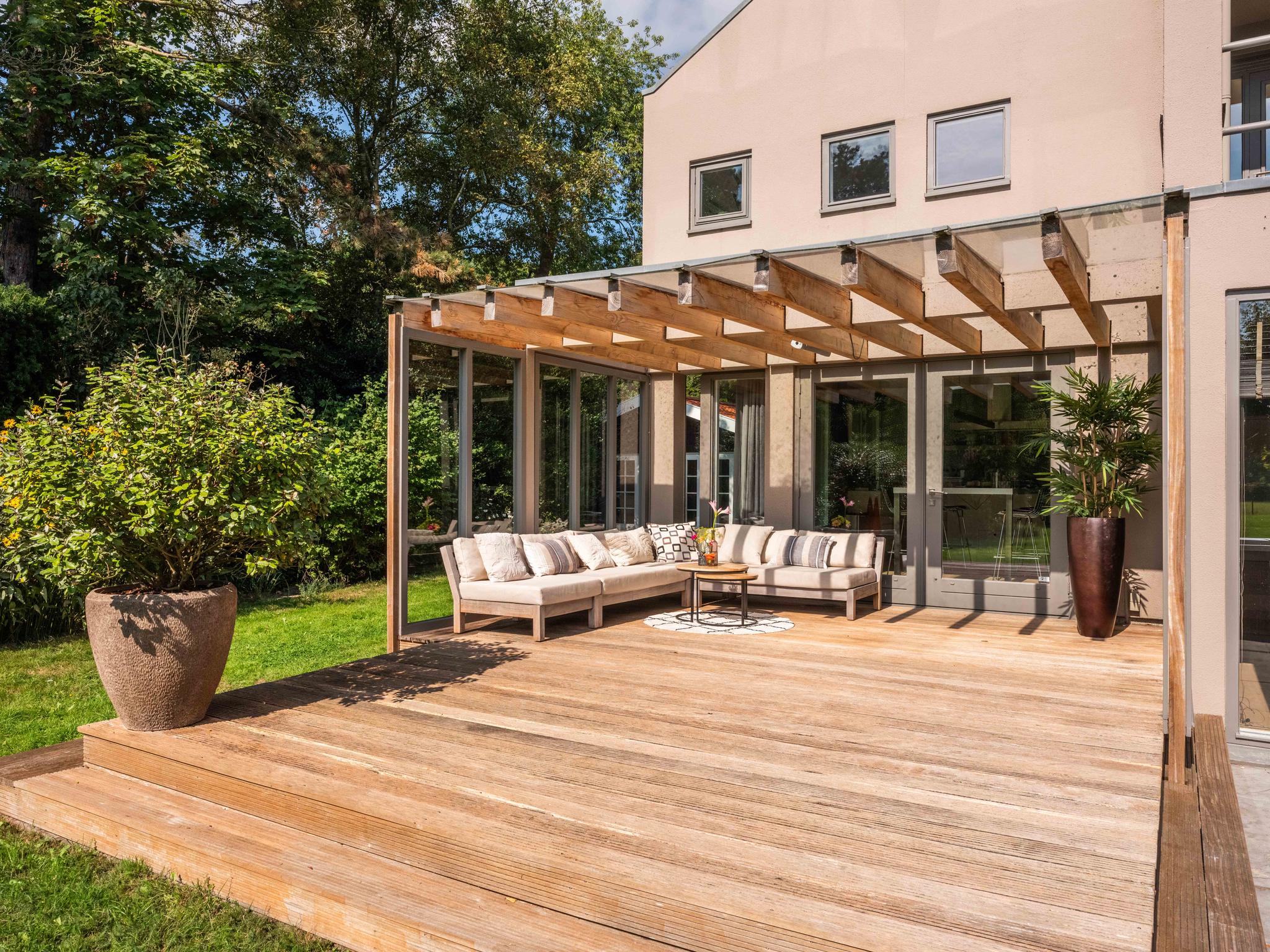 Вилла Bergen расположена в исключительно спокойном месте с широкими видами на луга и полной приватностью, которую обеспечивает художественно оформленный вход. Этот особняк гармонично сочетает в себе историю и современность. В передней части участка площадью 2 684 м² находится тщательно отреставрированный в 2014 году крытый соломой фермерский дом середины XVIII века, придающий недвижимости особый колорит. Этот флигель полностью оборудован для работы в качестве домашнего офиса, студии или неформального ухода — его гибкость соответствует богатому прошлому.