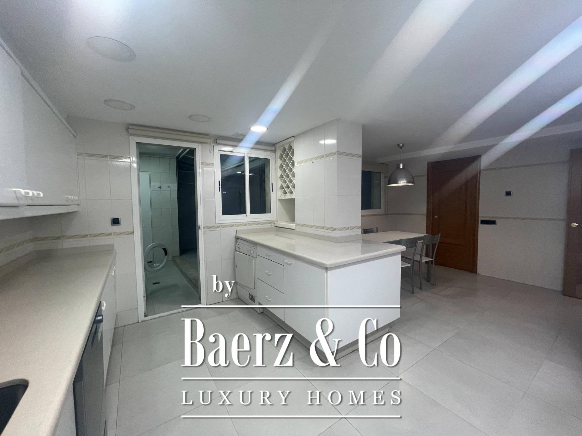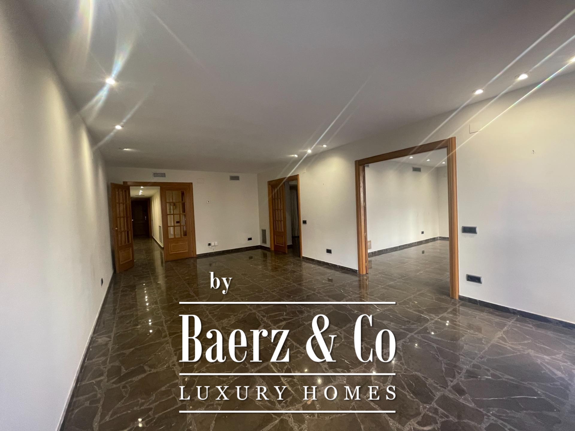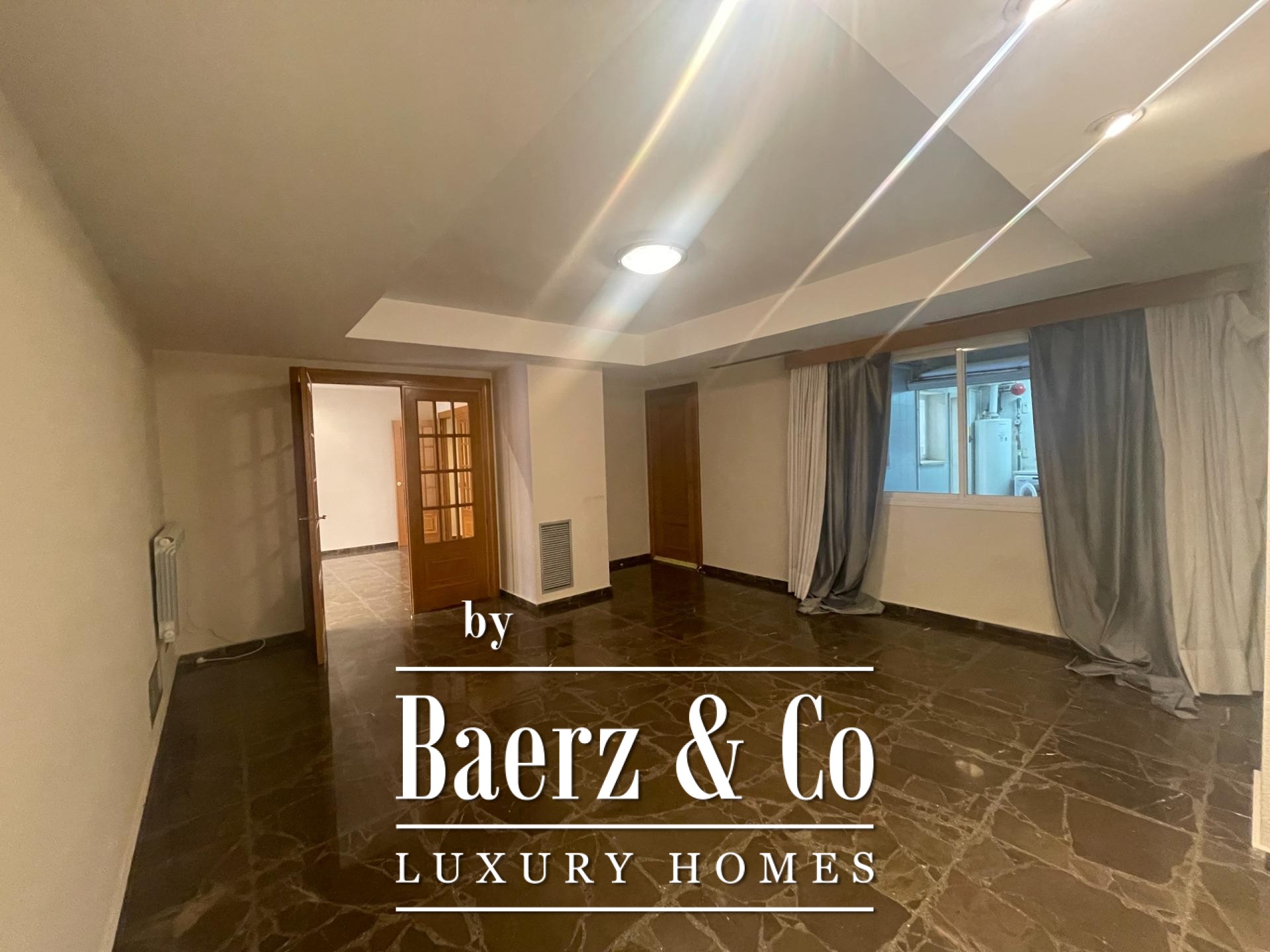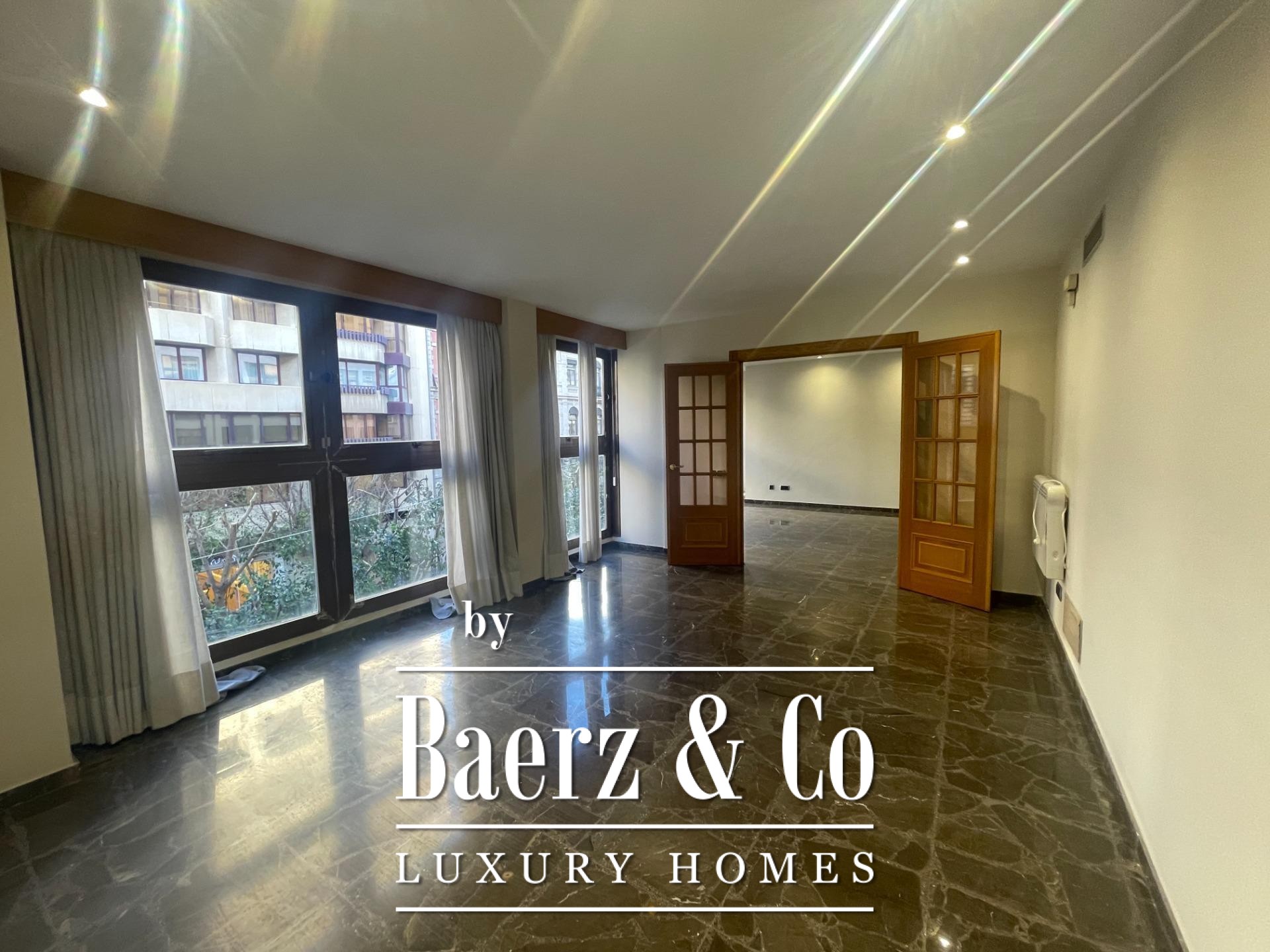 SPACIOUS APARTMENT ON COLON STREET~~Baerz & Co SELLS APARTMENT ON COLON STREET~~Superb apartment in a modern building on Colón Street, built in 1990. It has a constructed area of 269 m2. The layout includes a spacious entrance hall, a large living-dining room with expansive windows, 5 double bedrooms with built-in wardrobes (the master suite includes a dressing room), 3 full bathrooms (one en suite), and a guest toilet. There is also a large eat-in kitchen with access to an interior terrace. A parking space in the same building is included. The apartment features marble floors and wooden floors in the living room and bedrooms. It also has ducted hot and cold air conditioning and oak interior woodwork.~~Pla del Remei~Developed after the demolition of Valencia's city walls in 1868, Pla del Remei is home to numerous stately and modernist buildings alongside a wide range of shops, including some of the city's best and most prestigious stores. In this neighborhood stands out one of the greatest examples of Valencian modernism; the Colón Market, renovated in 1993 and considered one of the best options in the city to enjoy after work and its wide range of cafes and restaurants.~Enviar comentarios~Paneles laterales~Historial~Guardado~Pulsa