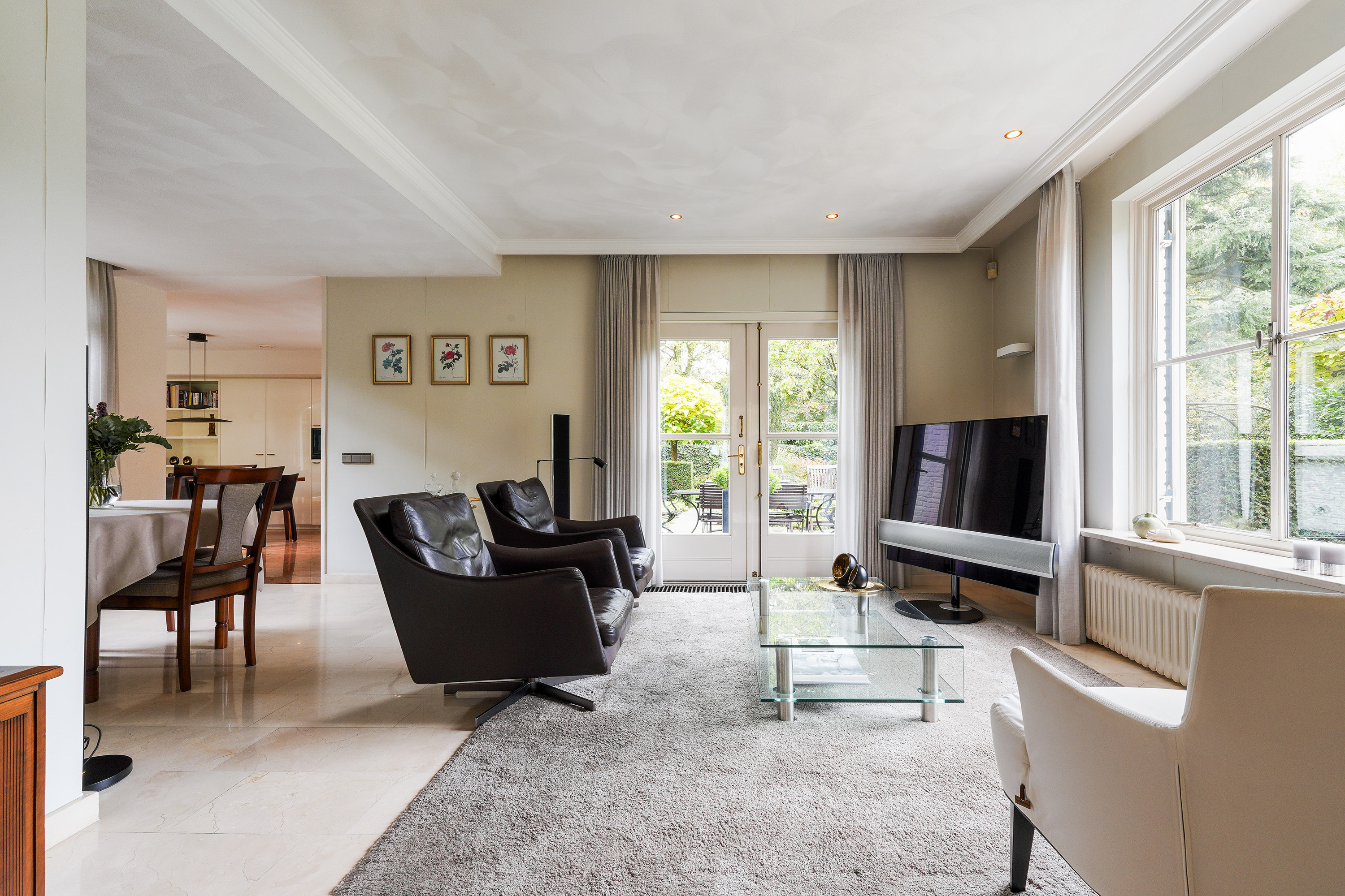 Эта отдельно стоящая вилла в Ваалвейке непосредственно граничит с парком, предлагая исключительное сочетание городской доступности и уединённого спокойствия. Построенный в 1954 году особняк располагает около 216 м² жилой площади и воплощает сдержанную элегантность и функциональную роскошь на участке площадью 1 132 м².