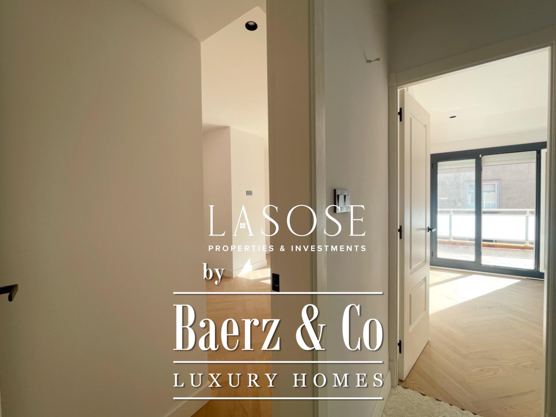 玄关连接两间双人卧室,其中主卧面积宽敞,配有大型套内卫生间。两间卧室均可直通阳光充沛的露台,引入大量自然光并兼顾私密性。日间区域包括现代化的用餐厨房与餐厅,每个空间均面向宽阔的露台,使其成为家的心脏地带。