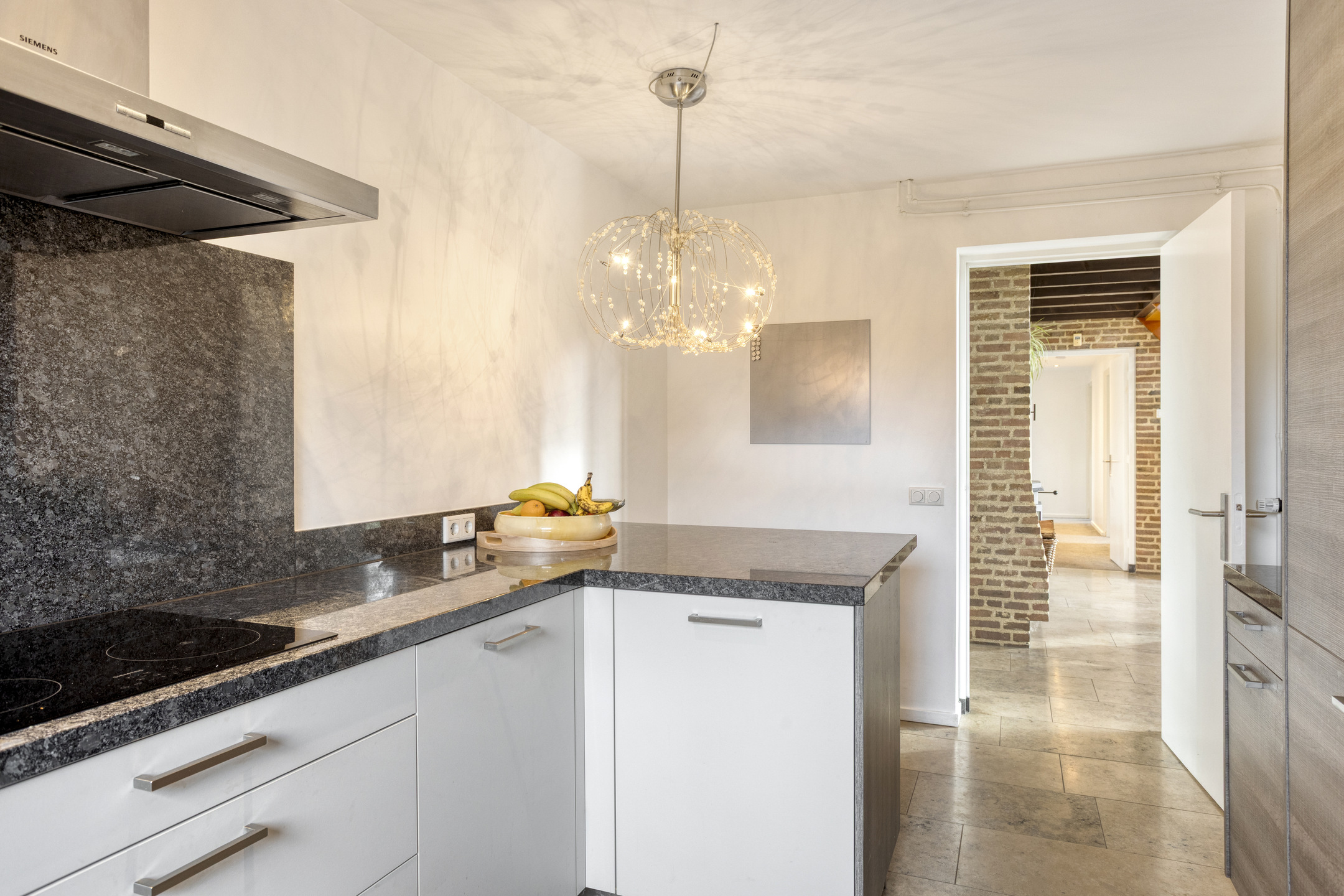 Via de hal kom je in de eetkamer, een lichte en uitnodigende ruimte dankzij de grote schuifpui. De eetkamer is voorzien van een houtkachel. Hier bevindt zich ook de trapopgang naar de eerste verdieping. Vanuit de eetkamer loop je door naar de woonkamer en de keuken. De woonkamer is ook voorzien van een sfeervolle houtkachel. De dichte keuken heeft een speels effect dank zij de bar aan het keukenblad. De keuken is uitgerust met diverse inbouwapparatuur, waaronder een 4-pits inductiekookplaat met afzuigkap, oven, koelkast, vaatwasser, stoomoven, warmhoudlade en een keukenboiler.