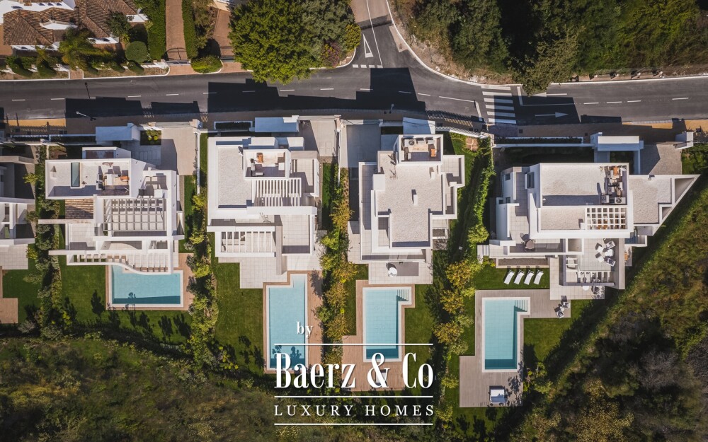 El Paraiso 区的马贝拉别墅坐落在安达卢西亚群山之间,环境宁静高雅,专属安全社区仅有九套住宅,尽显尊贵。别墅建筑面积 626 平方米,位于 808 平方米的地块上,专为追求静谧且希望便捷前往马贝拉、埃斯特波纳和海岸线的业主所设计。Villa Marbella 以简洁线条和宽敞的南至东南朝向打造空间,充足的自然采光贯穿每一处生活区。落地玻璃窗将开放式起居空间与高端德国品牌的雕塑感厨房自然联通,延展至私家庭院和专属泳池。每间卧室均配备独立卫浴、优雅木地板以及静谧现代的饰面,融合 Villeroy & Boch 卫浴、灰色大理石地砖和精致灯光设计。居所强调舒适与精致,配备地暖、冷热空调、智能家居系统与壁炉。两处有顶停车位、智能感应器以及多功能地下空间——无论作为健身房还是私人影院皆宜——完善整体配置。周边 El Paraiso 社区拥有知名高尔夫球场、国际学校、精品店及高端餐饮,为居民营造低调、便捷的生活节奏。