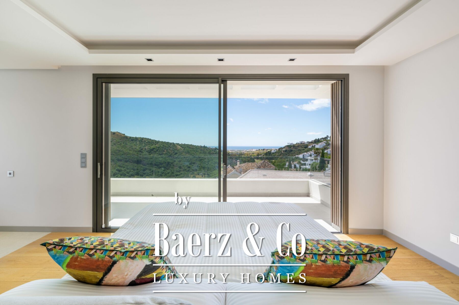 Marbella别墅坐拥海景与山景,坐落于宁静的Lomas de la Quinta高级门禁社区,以私密与平和氛围著称,尽显精致生活格调。这座建筑面积764平方米的六卧室别墅坐落于1,377平方米的地块上,现代建筑风格融合天然材质,自然采光与宽阔空间相得益彰。317平方米的露台以及两处起居区均可欣赏地中海海岸及Sierra de las Nieves山脉美景,宽大落地窗将壮丽景致尽收眼底。
