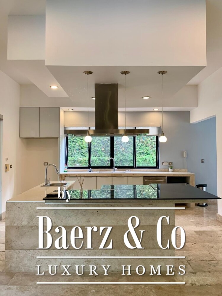 线性大理石地面、雅致立面以及克制的色彩体系,充分提升全屋的自然采光体验。内部空间宽敞,以开放式客餐厅为中心,通向专属内院与游泳池,配有浅水区、自动过滤及灌溉系统。厨房设有大理石台面中岛与充裕储物,低调连通至服务区及六车位车库。五间卧室中,三间楼上套房附露台或阳台、步入式衣帽间及配套大理石浴室,主套房配有按摩浴缸和园林景观。