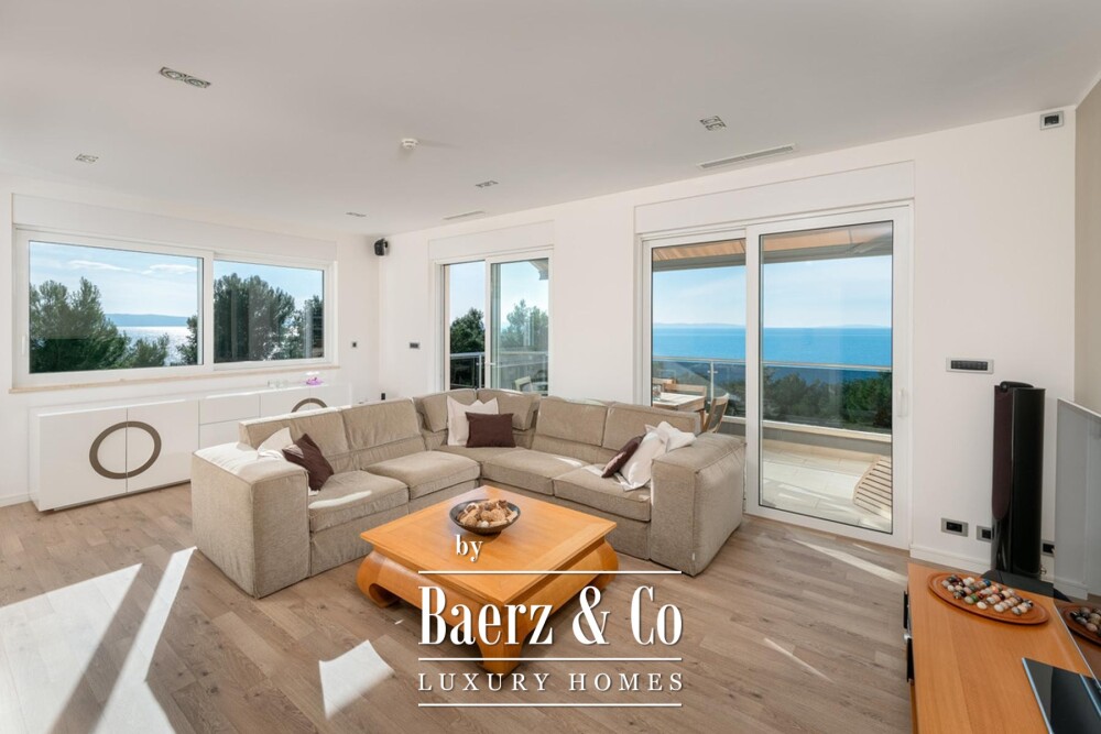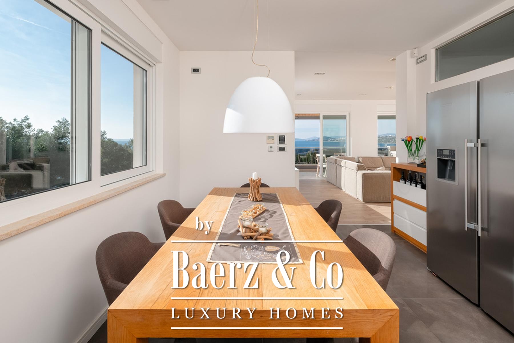 三处露台总面积达18.38平方米,尽享亚得里亚海全景视野,景致稳定长存。客厅区域光线充足,得益于大幅玻璃幕墙与精准朝向。专用工作间配备洗衣设施,独立衣帽间便于高效收纳。全宅智能系统覆盖地暖、空调、新风系统、烟雾与报警探测器、中央吸尘、中水用太阳能热水、高端电动百叶与遮阳篷以及高品质家电。露台上的传统砖砌壁炉,让住户连接达尔马提亚的户外自然。